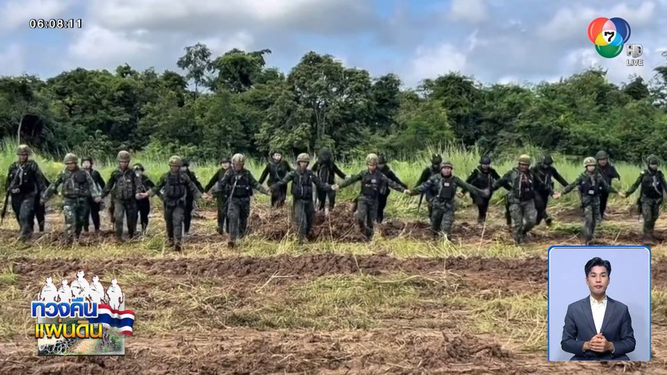 เช้านี้ที่หมอชิต - ทหารไทยเดินฝ่าสนามทุ่นระเบิด หลังเก็บกู้สำเร็จ ก่อนส่งมอบให้ชาวบ้าน แสดงสัญลักษณ์ให้เห็นชัด ๆ ว่า ที่นี่ "แผ่นดินไทย"