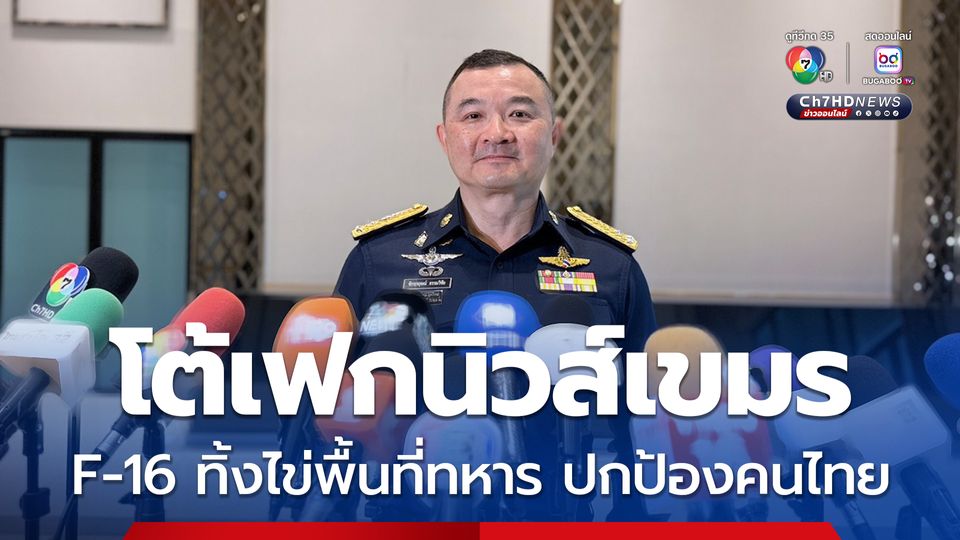 โฆษก ทอ. โต้เฟกนิวส์กัมพูชา บิดเบือนคำพูด “สว.อังคนา” ยัน ไทยโจมตีเฉพาะพื้นที่ทางทหาร ปกป้องพลเรือน-รักษาอธิปไตย หลังกัมพูชายิงจรวดเข้าพื้นที่ประเทศไทย ทำให้คนไทยเสียชีวิต-บาดเจ็บ