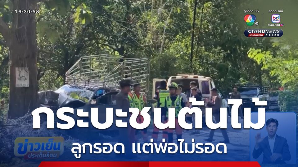 รถกระบะชนต้นไม้ ลูกรอด แต่พ่อไม่รอด