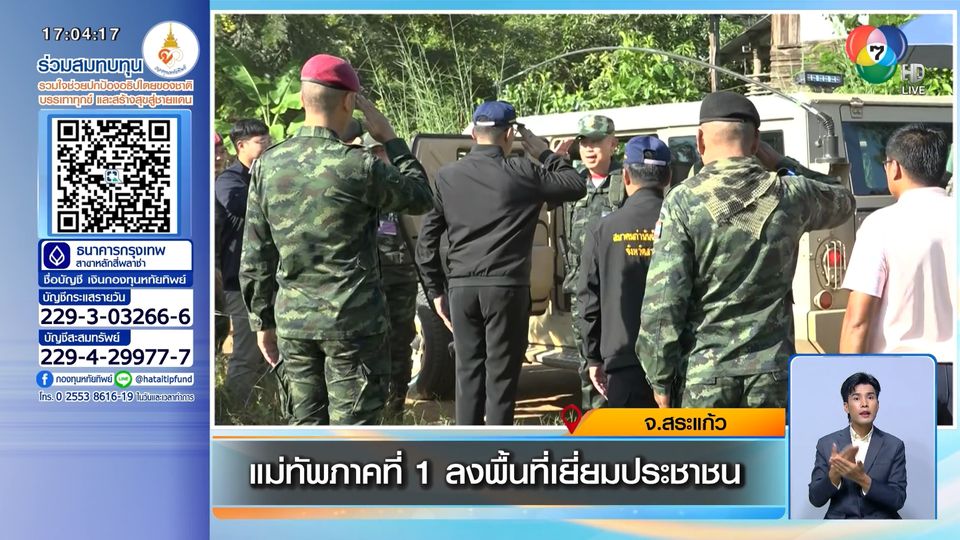 ข่าวเย็นประเด็นร้อน - แม่ทัพภาคที่ 1 ลงพื้นที่ให้กำลังใจชาวบ้านริมชายแดนจังหวัดสระแก้ว เร่งสำรวจพื้นที่ สร้างกำแพงรั้วชายแดนไทย-กัมพูชา