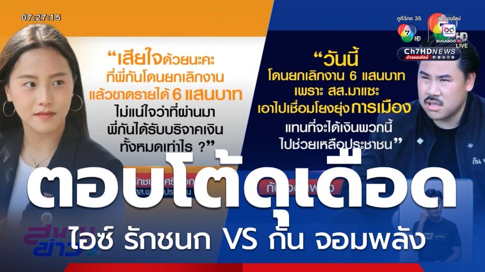 สนามข่าว 7 สี - การเมืองสกปรก "กัน จอมพลัง" โพสต์ตัดพ้อในโซเชียล หลังถูกโยงว่าเป็นสนิทของ "ร้อยเอก ธรรมนัส" หลังจากนั้นเป็นประเด็นตอบโต้ดุเดือดระหว่าง สส.ไอซ์ รักชนก