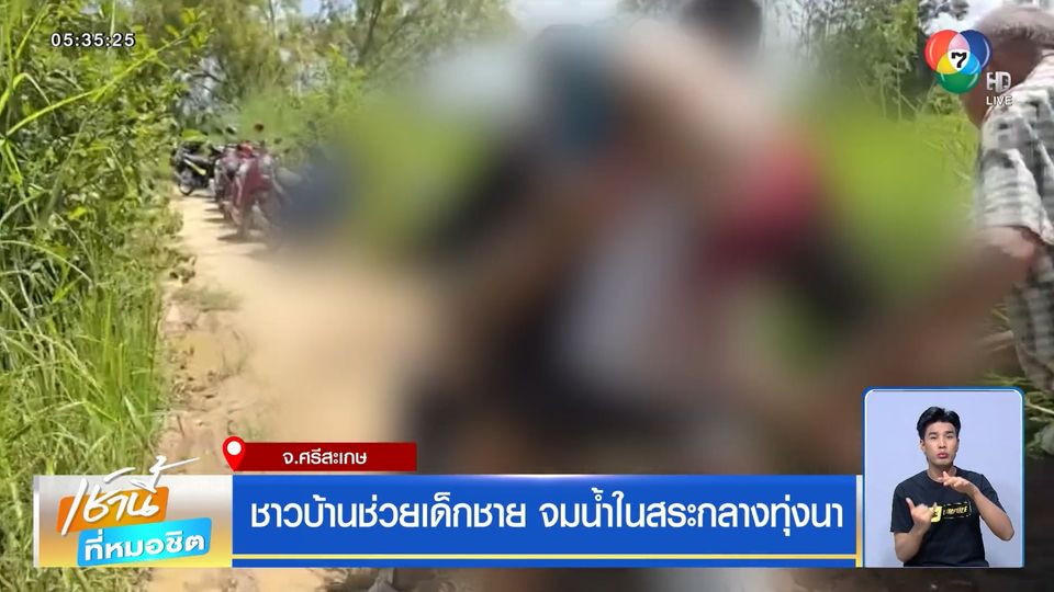 ชาวบ้านช่วยเด็กชาย จมน้ำในสระกลางทุ่งนา จ.ศรีสะเกษ