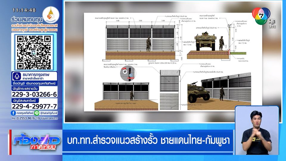 ห้องข่าวภาคเที่ยง - เกาะติดรั้วและถนนตรวจการณ์ ชายแดนไทย-กัมพูชา กองบัญชาการกองทัพไทย เดินหน้าสำรวจ ออกแบบเสร็จ เน้นคงทน ถาวร ผลิตสำเร็จรูปจากภายในประเทศ