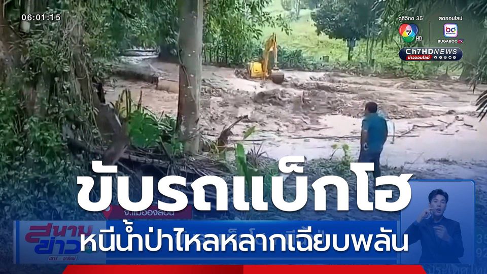 ขับรถแบ็กโฮ หนีน้ำป่า จ.แม่ฮ่องสอน