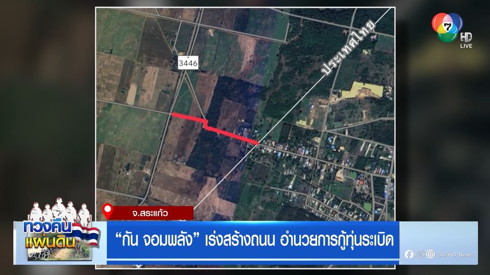 ข่าวภาคค่ำ - “กัน จอมพลัง” ลงพื้นที่ติดตามความคืบหน้าทำถนนชายแดนหนองหญ้าแก้ว เพื่อให้ทหารดำเนินการเก็บกู้วัตถุระเบิด - ผลักดันกัมพูชา