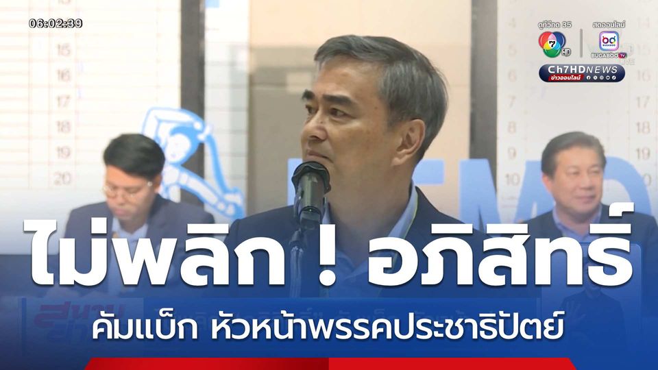 สนามข่าวเสาร์-อาทิตย์ - เป็นไปตามคาด การประชุมใหญ่พรรคประชาธิปัตย์เลือกนายอภิสิทธิ์ คัมแบ็กกลับมานั่งหัวหน้าพรรคอีกครั้ง โดยไม่มีคู่แข่ง