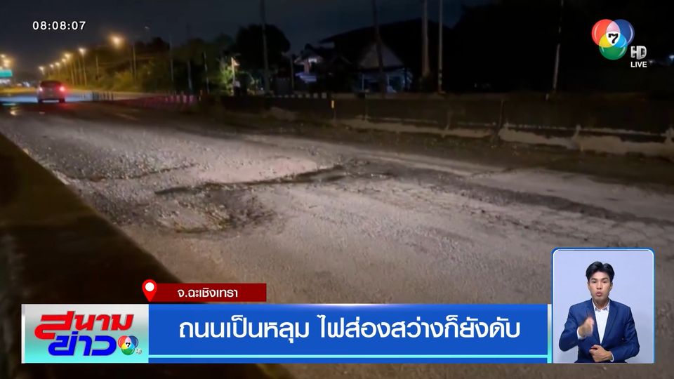 สนามข่าว 7 สี - ชาวบ้านร้อง ถนนเป็นหลุมขนาดใหญ่ ส่วนไฟฟ้าริมทางก็เอาแต่ใจ ดับหลายต้น ทำให้ผู้ใช้ถนนรับกรรม