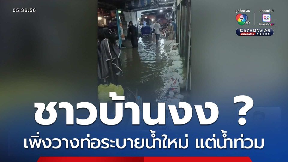 เช้านี้ที่หมอชิต - ชาวบ้านงงเพิ่งวางท่อระบายน้ำใหม่ แต่ฝนตก 10 นาที น้ำท่วมชุมชน 3 รอบ ชาวบ้านเดือดร้อนหนักท่วมจนท้อ วอนหน่วยงานรับผิดชอบ และเร่งหาทางแก้ปัญหา
