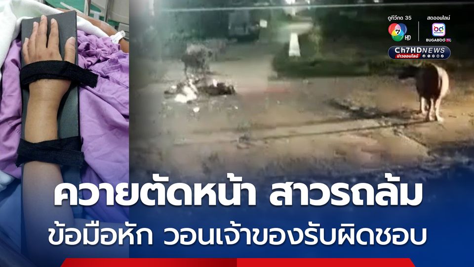 สาวขี่รถ จยย.กลับบ้านชนควาย ข้อมือหัก รถพัง วอนเจ้าของควายรับผิดชอบ