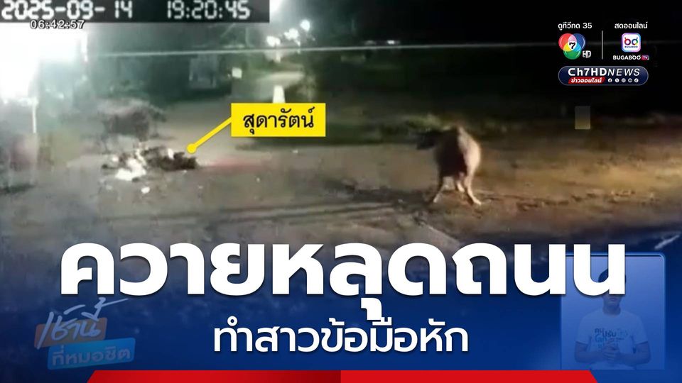 สาวเซ็ง ควายหลุดถนน ทำข้อมือหัก จ.อุดรธานี