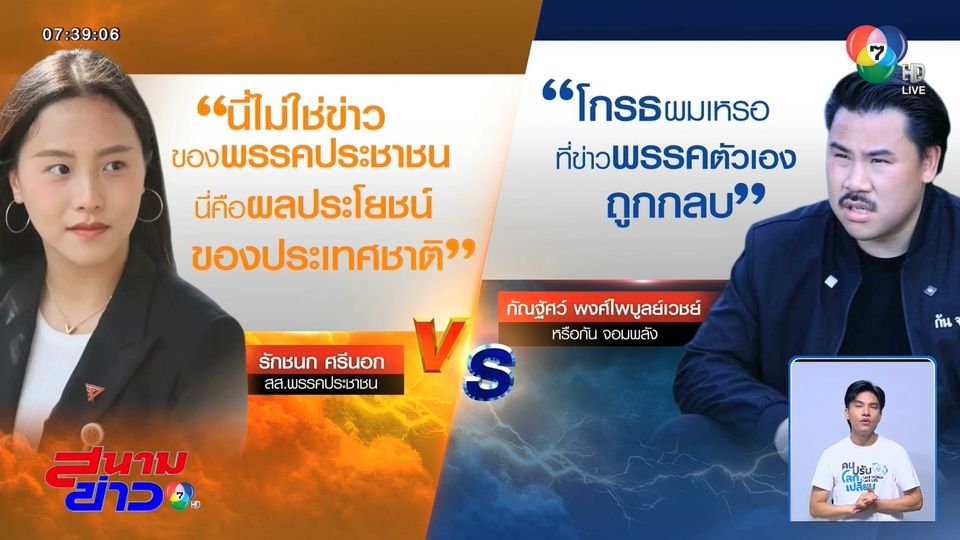 สนามข่าว 7 สี - ตอบโต้กันไปมาตั้งแต่ปลายสัปดาห์ก่อน ระหว่าง "ไอซ์ รักชนก" กับ "กัน จอมพลัง" ถูกโยงว่าเป็นสนิทของ ร้อยเอกธรรมนัส วานนี้มีกันโต้กันไปมายาว 2 ชั่วโมง ผ่านทางรายการออนไลน์