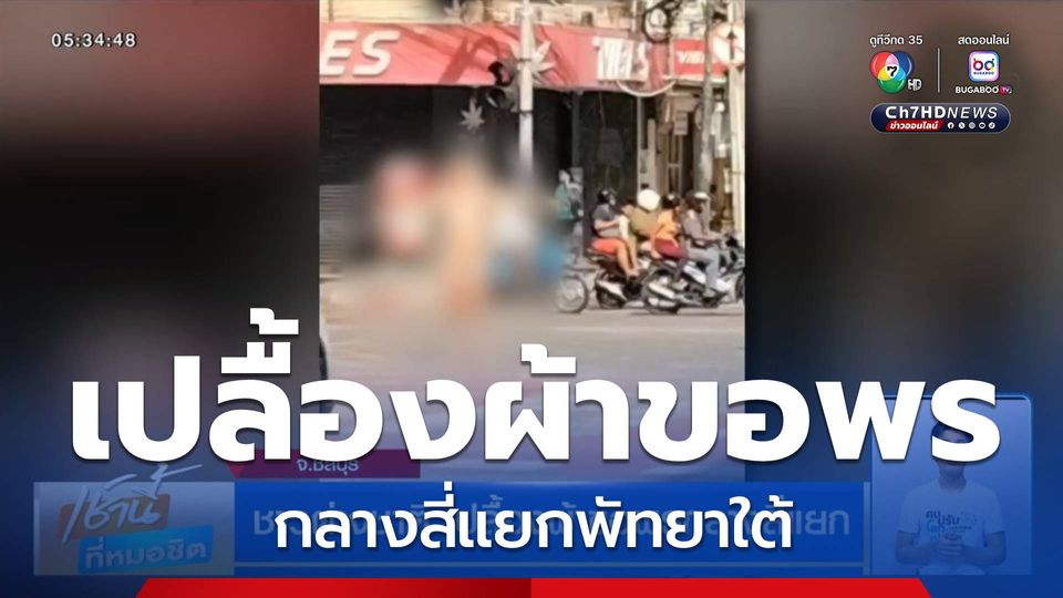 เช้านี้ที่หมอชิต - ไม่รู้ไปโดนตัวไหนมา ชายชาวต่างชาติ ขี่รถจักรยานยนต์ "บิกไบก์" อย่างเท่ แล้วไปจอดบริเวณสี่แยกพัทยาใต้ ถอดเสื้อผ้าออกมาเดินขอพรพระเจ้า