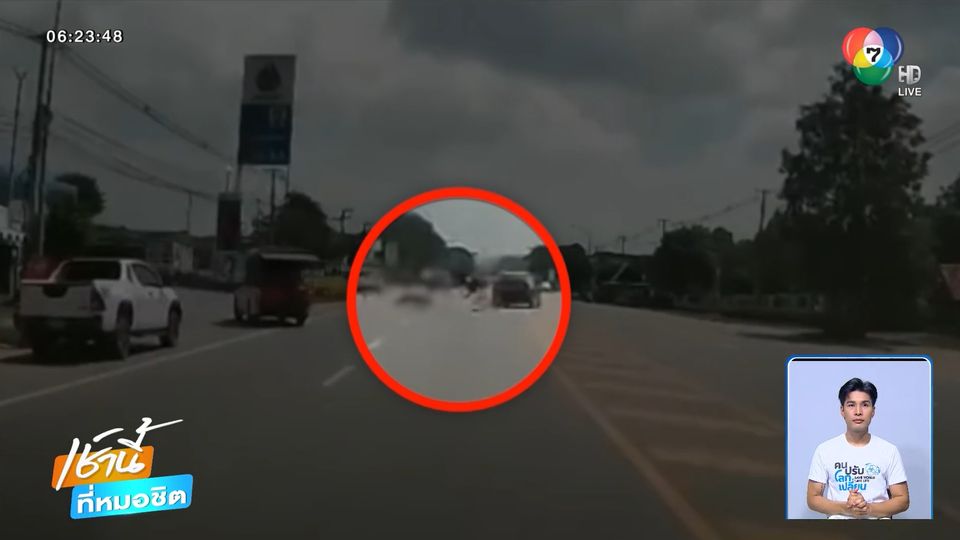 เช้านี้ที่หมอชิต - รถจักรยานยนต์ขี่ตัดหน้ารถเก๋งที่วิ่งมาทางตรง ที่มีพระเป็นคนขับ ทำให้คนขี่รถจักรยานยนต์ เป็นชายอายุ 65 ปี ที่ไปยืนยันตัวตนเพื่อรับสิทธิคนละครึ่ง ได้รับบาดเจ็บอาการสาหัส