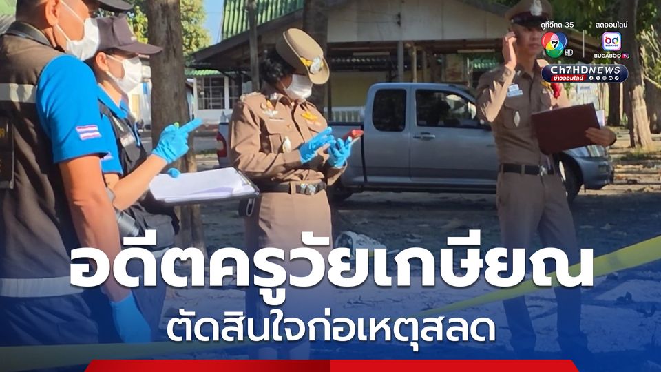 ที่เกิดเหตุพบร่างนายเอ (นามสมมุติ) อายุ 69 ปี อดีตข้าราชการครู สภาพสวมเสื้อเชิต ลายสก๊อตสีฟ้าขาว กางเกงขายางสีเทา สวมรองเท้าแตะ บริเวณขมับด้านขวามีรูกระสุนทะลุด้านซ้าย 1 แผล นอนหงายหลังพิงกำแพง คาดว่าเสียชีวิตมาแล้วประมาณ 7- 10 ชั่วโมง บริเวณหน้าขาพบปืนพกสั้น ขนาด .38 ตกอยู่ 1 กระบอก ภายในบรรจุกระสุน ขนาดเดียวกัน 3 นัด ถูกยิงไปแล้ว 1 นัด ใกล้กันพบรถจักรยาน สีขาวแดง จอดอยู่ 1 คัน เจ้าหน้าที่จึงได้ทำการตรวจสอบเก็บไว้เป็นหลักฐาน ตรวจสอบสภาพศพ และ ที่เกิดเหตุไม่พบร่องรอยการต่อสู้แต่อย่างใด