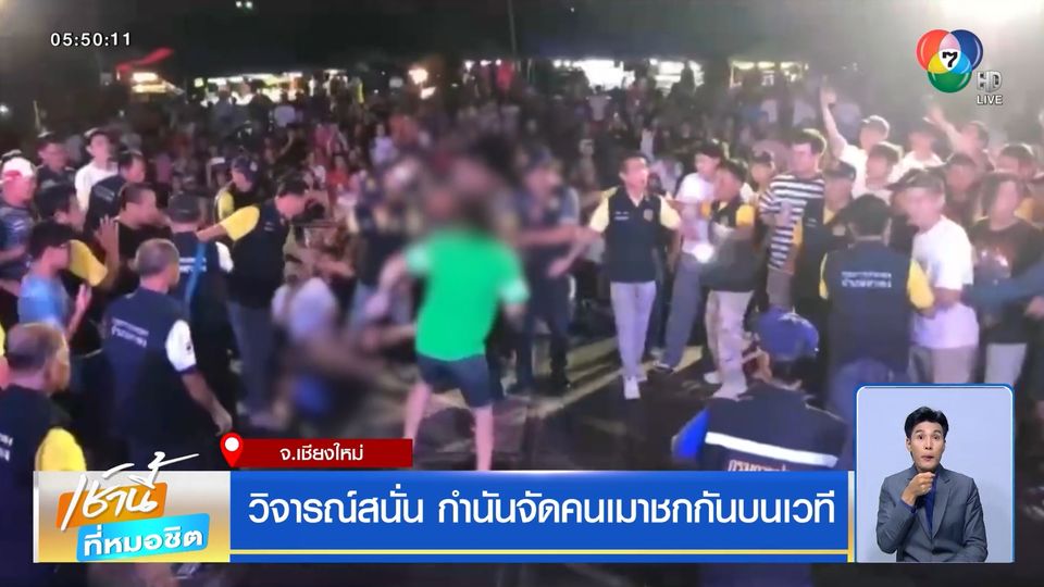 เช้านี้ที่หมอชิต - ที่จังหวัดเชียงใหม่ เหตุกาณ์ที่ชาวเน็ตวิจารณ์สนั่น หลังกำนันสั่งให้คนเมาต่อยกันตัวต่อตัวบนเวที ให้ฝ่ายปกครองยืนล้อม เหมาะสมหรือไม่