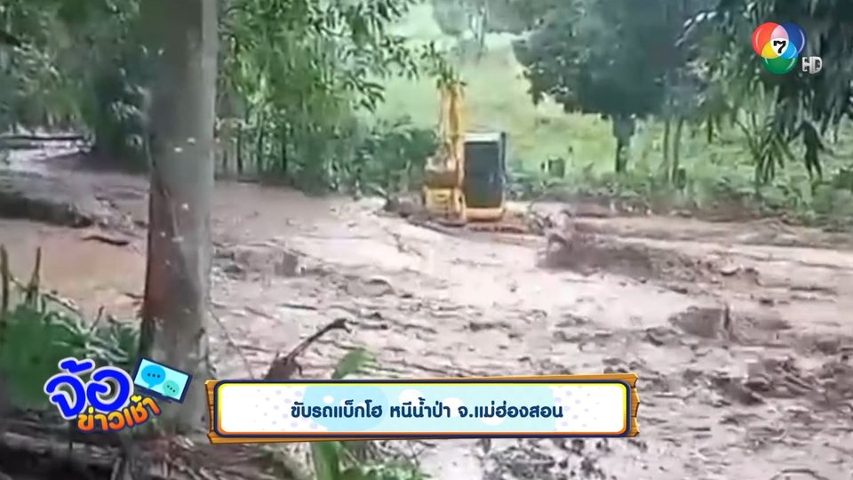 จ้อข่าวเช้า - ขับรถแบ็กโฮ หนีน้ำป่า จ.แม่ฮ่องสอน