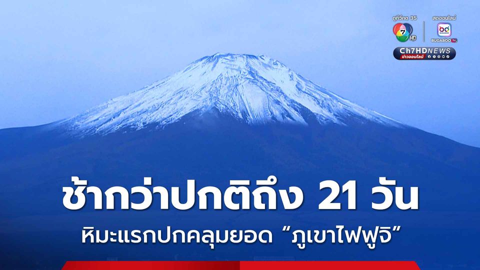 หิมะแรกบนยอด “ภูเขาไฟฟูจิ” ของญี่ปุ่น เริ่มโปรยปรายแล้ว หลังล่าช้ากว่าค่าเฉลี่ยปกติถึง 21 วัน แต่ยังถือว่าเร็วกว่าหิมะแรกของปีก่อน