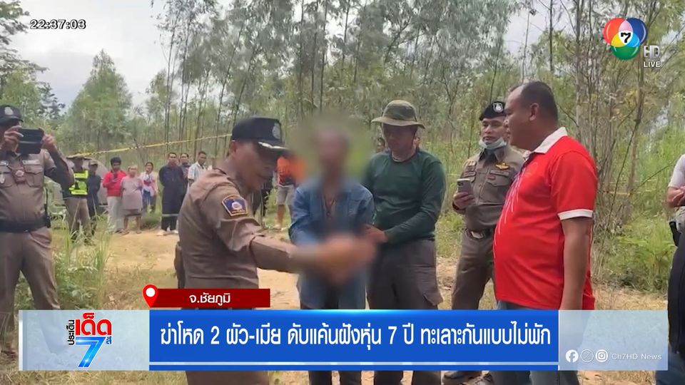 ประเด็นเด็ด 7 สี - คดีนี้ตำรวจเร่งคลี่ปมได้ไว หลังไปพบศพผัว-เมียถูกยิงตายอยู่กลางป่า พบพิรุธเพื่อนบ้านติดกัน ซึ่งมีปัญหาทะเลาะกัน หนีข้ามจังหวัด เร่งสกัดล่าตัว รับสารภาพแค้นฝังหุ่น เพราะทะเลาะกัน 7 ปี แบบไม่พัก