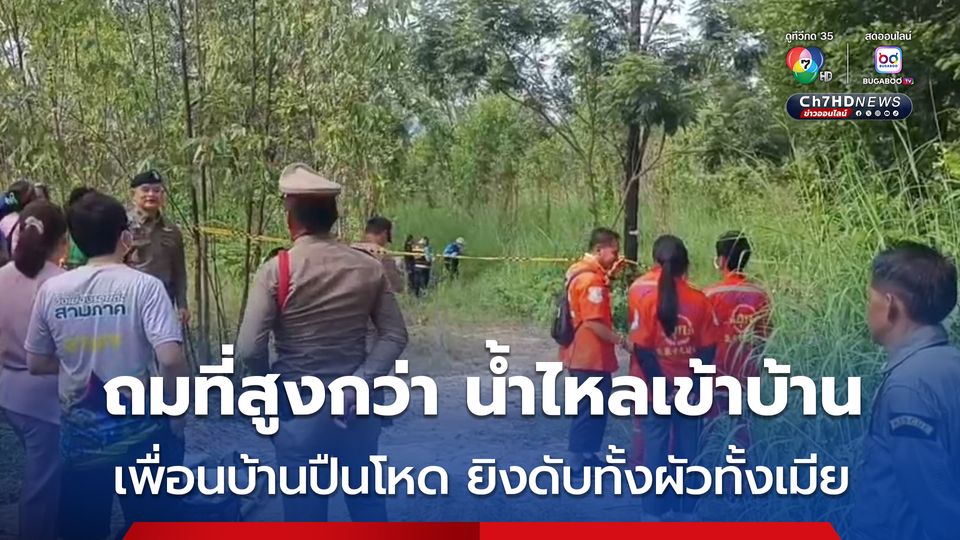 รวบเพื่อนบ้านปืนโหด ยิงเจาะเพื่อนบ้านดับทั้งผัวทั้งเมีย สารภาพโกรธเคียงกันมานาน เรื่องเพื่อนบ้านถมที่สูงกว่า แล้วน้ำจากบ้านเพื่อนบ้านไหลเข้าท่วมบ้านตนเองเป็นประจำเมื่อมีฝนตก เผย ตอนแรกจะยิงแค่คนเป็นผัว แต่เมียเพื่อนบ้าน ขี่จยย.เข้ามาในที่เกิดเหตุพอดี จึงยิงด้วย