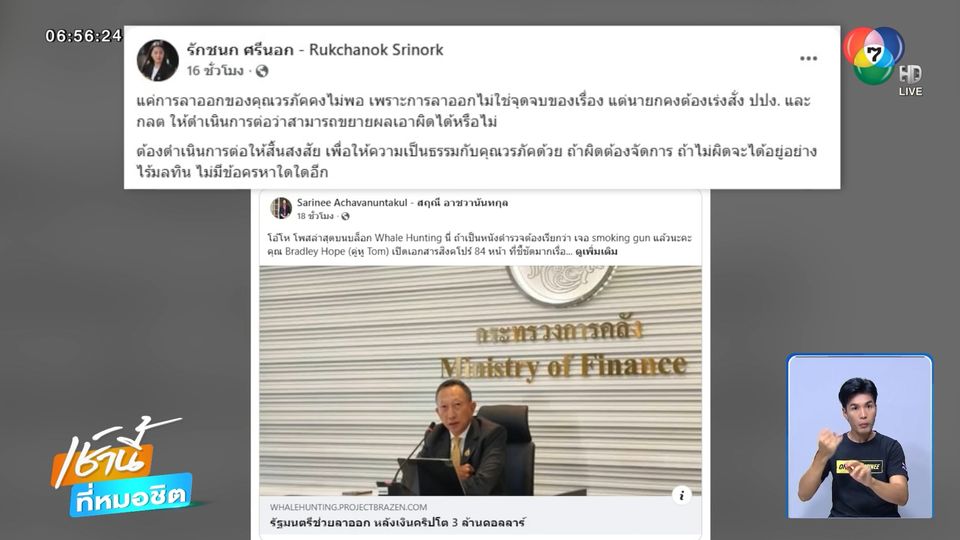 เช้านี้ที่หมอชิต - หลังจากนายวรภัค ธันยาวงษ์ ยื่นหนังสือลาออกจากตำแหน่ง รัฐมนตรีช่วยว่าการกระทรวงการคลัง หลังตกเป็นข่าวเชื่อมโยงกับแก๊งสแกมเมอร์ ล่าสุดนายวรภัคฯ ได้เปิดศึกกับ "สฤณี" นักวิชาการอิสระ หลังแชร์ข่าวรับเงินจากสแกมเมอร์ พร้อมท้าให้เปิดหลักฐานการรับเงิน