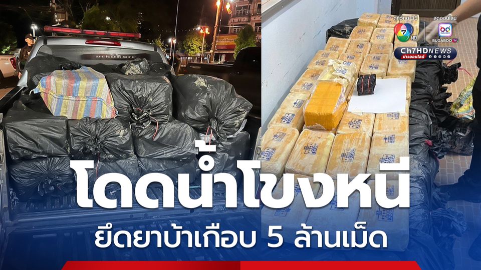 ตำรวจ สภ.เชียงแสน ร่วมกับทหาร สกัดจับรถกระบะ ขนยาบ้าจากประเทศเพื่อนบ้าน ยึดยาบ้าได้เกือบ 5 ล้านเม็ด ส่วนคนขับ กระโดดลงแม่น้ำโขงเผ่นหนีไปได้