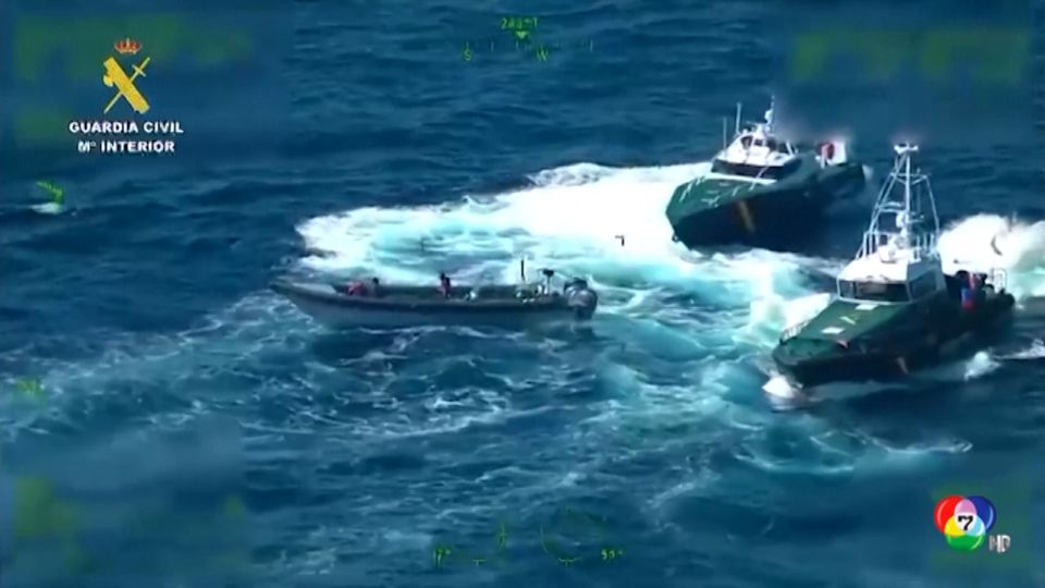 ตำรวจชายฝั่งสเปนไล่ล่าแก๊งลักลอบขนกัญชากลางทะเล ยึดของกลางได้น้ำหนักถึง 1.7 ตัน