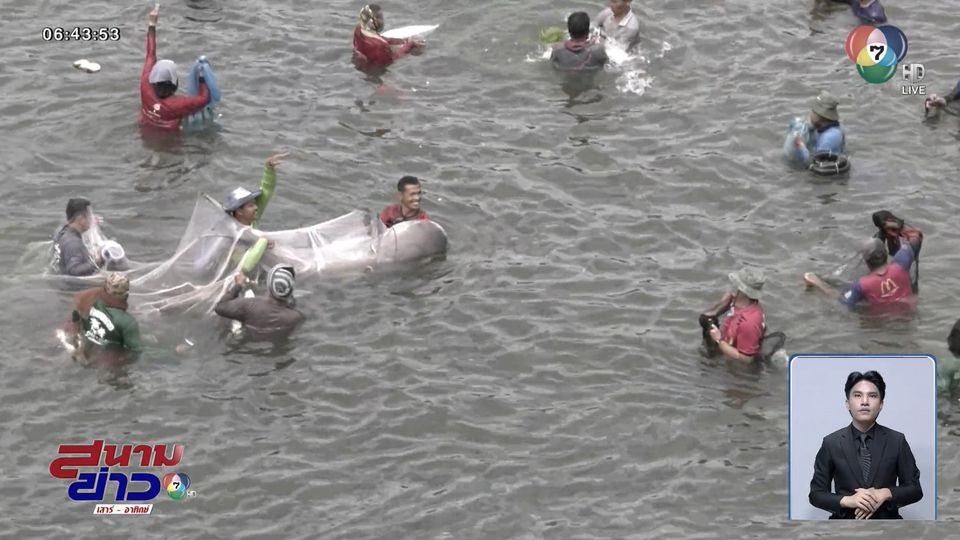 สนามข่าวเสาร์-อาทิตย์ - ที่จังหวัดขอนแก่น เจ้าหน้าที่ศูนย์วิจัยและพัฒนาประมงน้ำจืดขอนแก่น เข้าเก็บพันธุ์ปลามากกว่า 40 ชนิด ในลำน้ำพอง ส่วนชาวบ้านต่างพากันแห่มาจับปลา โดยมีชาวบ้านได้ปลาบึกหนักกว่า 200 กิโลกรัม หลังเขื่อนอุบลรัตน์ปิดสปิลเวย์