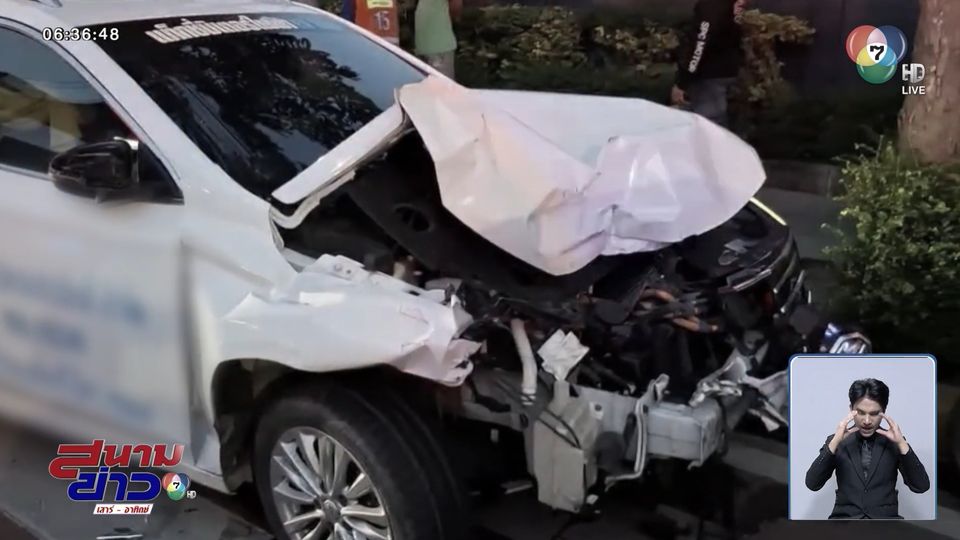 สนามข่าวเสาร์-อาทิตย์ - เกิดอุบัติเหตุรถแท็กซี่ เฉี่ยวชนรถชาวบ้าน 6 คันรวด ทำให้มีผู้บาดเจ็บกว่า 10 คน คนขับอ้างวูบ จำอะไรไม่ได้