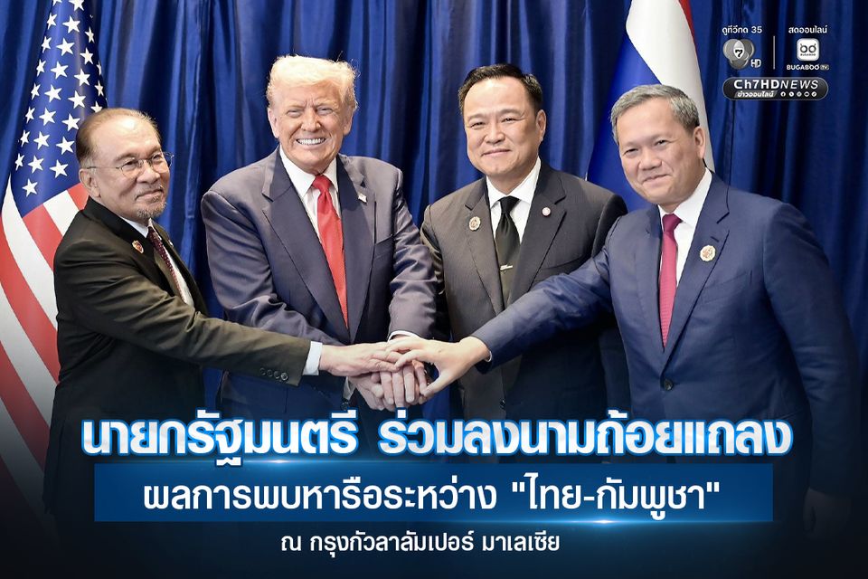 “อนุทิน” ลงนามถ้อยแถลงผลการพบหารือระหว่างนายกฯ “ไทย-กัมพูชา” เดินหน้าสู่สันติภาพสองประเทศ “ทรัมป์-อันวาร์” ร่วมเป็นสักขีพยาน