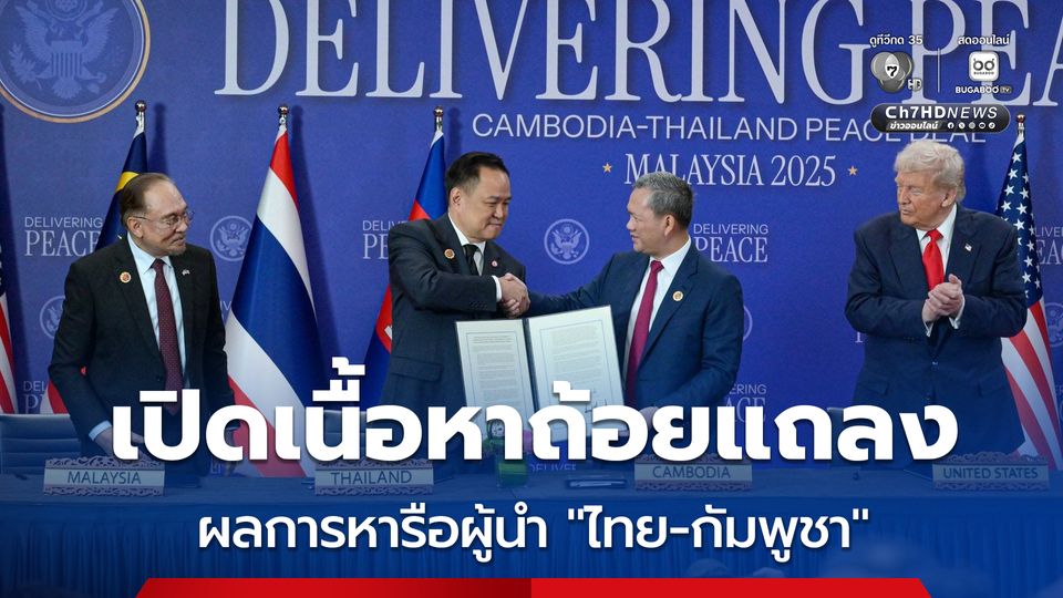 วันนี้ (26ต.ค.68) เว็บไซต์กระทรวงการต่างประเทศ เผยแพร่ เนื้อหาถ้อยแถลงผลการพบหารือระหว่างนายกรัฐมนตรีไทย และ นายกรัฐมนตรีกัมพูชา ณ กรุงกัวลาลัมเปอร์ มาเลเซีย ซึ่งเป็นคำแปลอย่างไม่เป็นทางการ เพื่อเดินหน้าการแก้ปัญหาชายแดนร่วมกันอย่างสันติภาพ ใจความสำคัญ ดังนี้