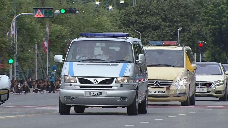 ขบวนพระบรมศพ สมเด็จพระนางเจ้าสิริกิติ์ พระบรมราชินีนาถ พระบรมราชชนนีพันปีหลวง เคลื่อนออกจากโรงพยาบาลจุฬาลงกรณ์ สภากาชาดไทย ไปยังพระบรมมหาราชวัง โดยรถยนต์พระที่นั่ง Volkswagen Caravelle V6 หมายเลขทะเบียน 1ด-0929 หรือที่รู้จักกันในชื่อ "เจมส์ บอนด์"