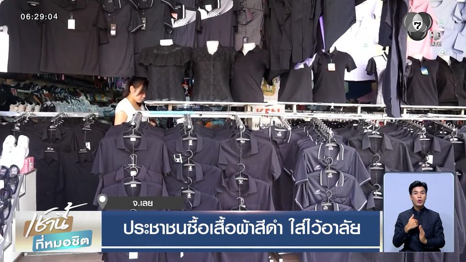 เช้านี้ที่หมอชิต - ประชาชนออกมาหาซื้อเสื้อผ้าสีดำ เพื่อนำสวมใส่เพื่อแสดงความอาลัย แม่ค้ายืนยันไม่ฉวยโอกาสขึ้นราคา