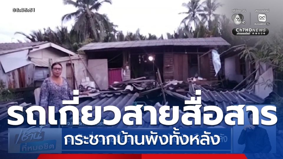 เช้านี้ที่หมอชิต - ช่วงเย็นวานนี้ เกิดเหตุระทึก รถบัสโดยสารเกี่ยวสายสื่อสารแล้วดึงรั้งบ้านไม้ริมถนนในอำเภอปากพนัง จังหวัดนครศรีธรรมราช พังครืนลงมาเสียหายทั้งหลัง