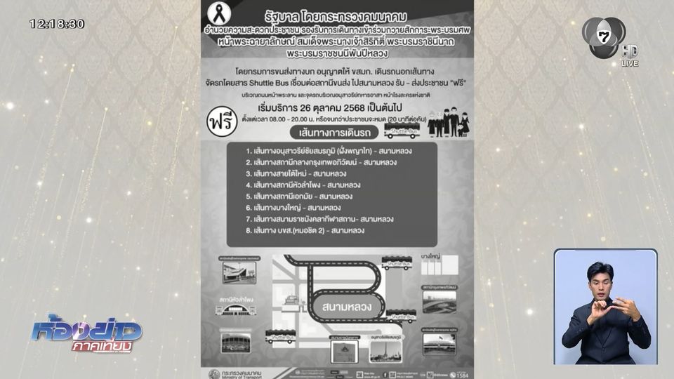 ห้องข่าวภาคเที่ยง - กระทรวงคมนาคม พร้อมอำนวยความสะดวกการเดินทางของประชาชน ที่ต้องการเข้าถวายสักการะพระบรมศพ สมเด็จพระนางเจ้าสิริกิติ์ พระบรมราชินีนาถ พระบรมราชชนนีพันปีหลวง