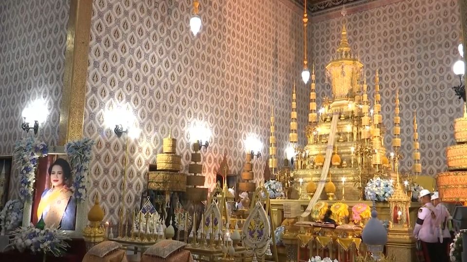 จากนั้น พระบาทสมเด็จพระเจ้าอยู่หัว ทรงจุดธูปเทียนเครื่องนมัสการพานทองสองชั้นบูชาพระพุทธรูปประจำพระชนมวาร ที่หน้าพระแท่นพระนพปฎลมหาเศวตฉัตร ทรงจุดธูปเทียนเครื่องบูชากระบะมุกที่แท่นเตียงพระพิธีธรรมสวดพระอภิธรรม