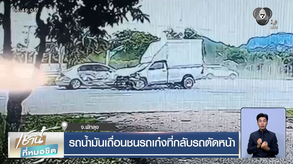 รถน้ำมันเถื่อนชนรถเก๋งที่กลับรถตัดหน้า