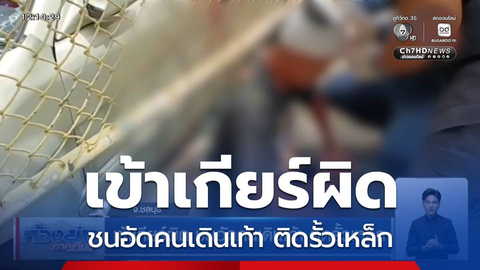 ห้องข่าวภาคเที่ยง - หญิง อายุ 64 ปี เข้าเกียร์ผิด ตั้งใจจะขับถอยหลัง แต่ไปใส่เกียร์เดินหน้า อารามตกใจ เหยียบคันเร่งซ้ำ พุ่งชนคนเดินเท้าไปอัดติดกับรั้วเหล็ก