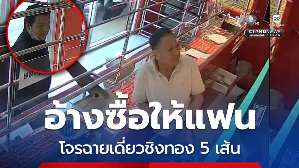 โจรตีเนียนเดินเข้ามาดูทองคำ บอกจะซื้อให้แฟน แต่อาศัยจังหวะเจ้าของร้านเผลอ รวบสร้อยคอทองคำหนัก 1 บาท จำนวน 5 เส้น หลบหนีไป