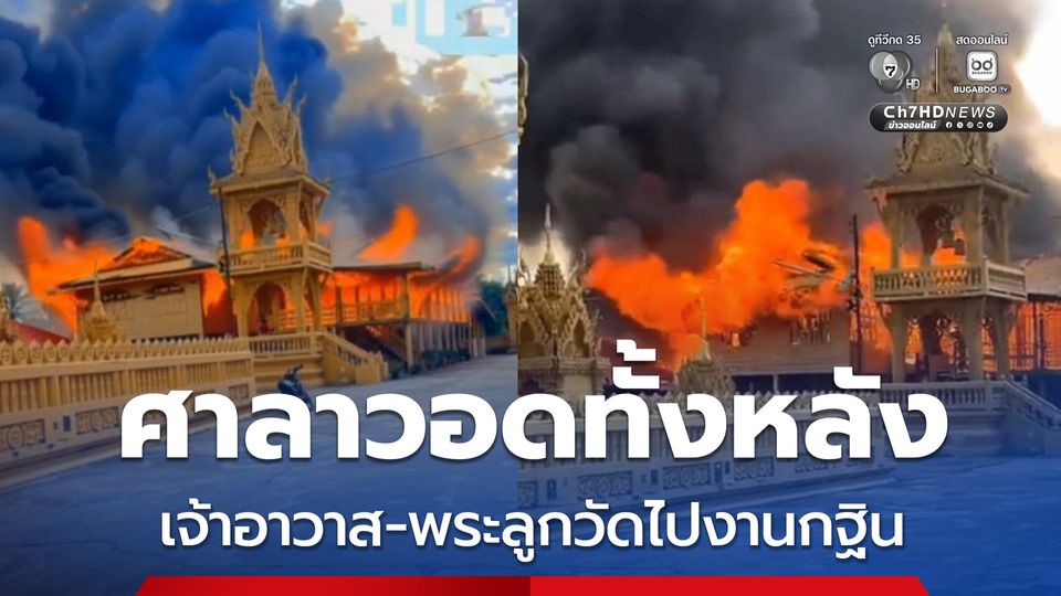 เพลิงไหม้ระทึก ตอนไม่มีใครอยู่วัด เหตุเจ้าอาวาสกับพระลูกวัดไปรับกิจกิจนิมนต์งานกฐินต่างหมู่บ้าน รถดับเพลิงเอาไม่อยู่ ไหม้ศาลาวอดทั้งหลัง