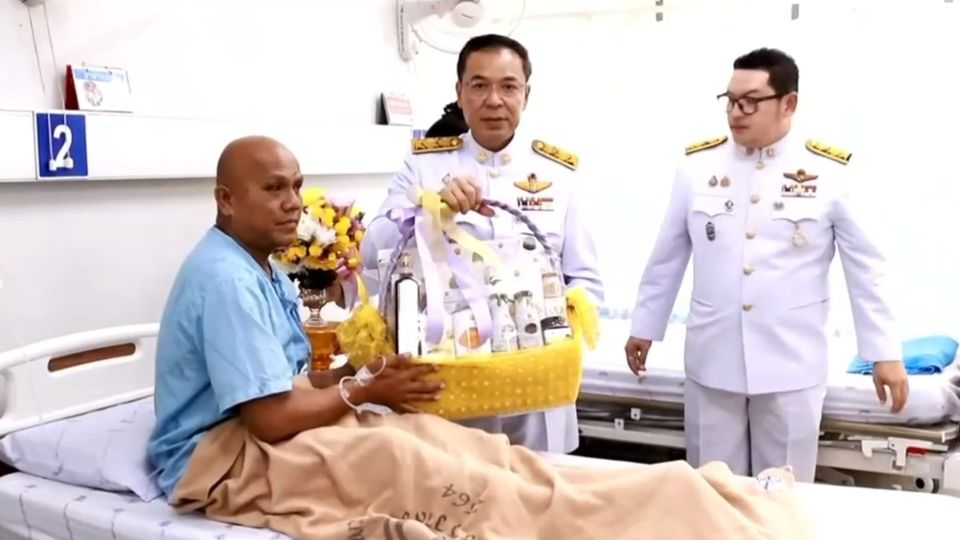 รองผู้ว่าราชการจังหวัดนราธิวาส เชิญดอกไม้และตะกร้าสิ่งของพระราชทาน ไปมอบแก่ผู้ได้รับบาดเจ็บจากเหตุการณ์ความไม่สงบ