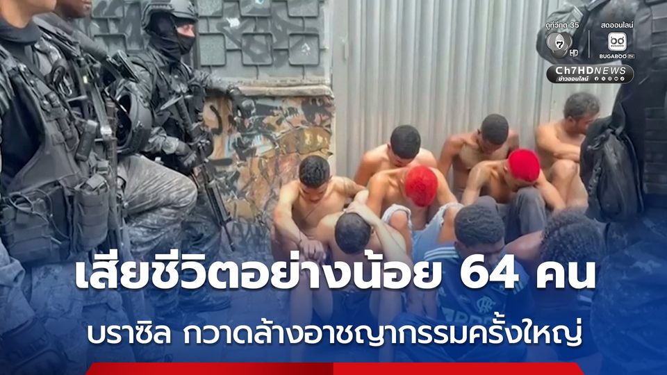 เจ้าหน้าที่ตำรวจบราซิล ปฏิบัติการปราบปรามแก๊งอาชญากรรมครั้งใหญ่ในนครรีโอเดจาเนโร ก่อนเป็นเจ้าภาพจัดงานประชุมสุดยอดสภาพภูมิอากาศของสหประชาชาติ หรือ COP30 ส่งผลให้มีผู้เสียชีวิต 64 คน