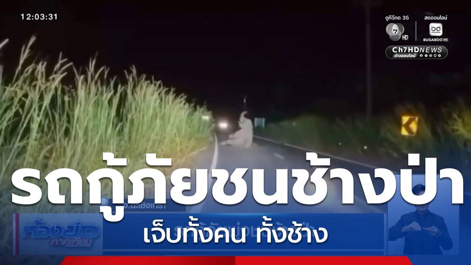 ห้องข่าวภาคเที่ยง - อุบัติเหตุครั้งนี้ สงสารทั้งคน สงสารทั้งช้าง เพราะเมื่อคืนนี้เกิดอุบัติเหตุรถกู้ภัยที่กำลังจะไปส่งผู้บาดเจ็บ ชนเข้ากับช้างป่า ทำให้ช้างป่าก็ได้รับบาดเจ็บเช่นกัน