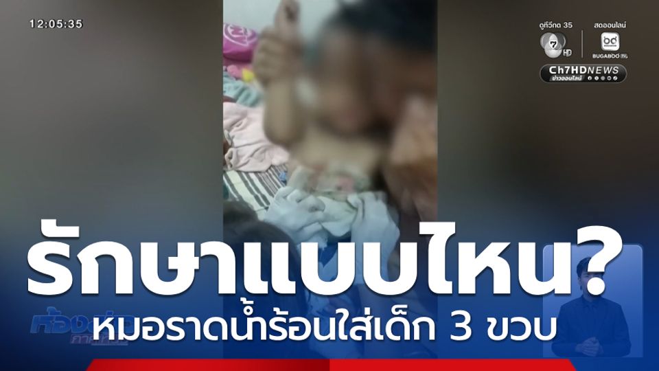 ห้องข่าวภาคเที่ยง - ครอบครัวใจสลาย อุ้มลูกชาย 3 ขวบ ไปรักษาไข้ที่คลินิก แต่กลับถูกหมอใช้น้ำร้อนราดที่ลำตัว จนเป็นแผลพุพอง สุดแสนทรมาน