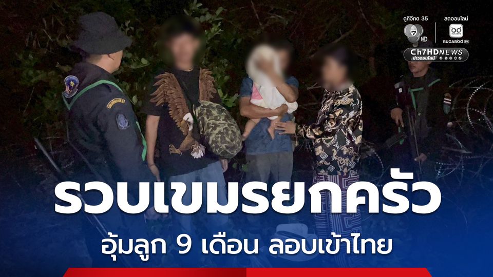 ทหารกองกำลังบูรพา รวบชาวกัมพูชายกครัว อุ้มลูกน้อยวัย 9 เดือน ลักลอบเข้าไทย ยอมจ่ายผู้นำพาหัวละ 5 พันบาท หวังกลับมาทำงานเย็บผ้าที่ตลาดโรงเกลือ หลังกลับประเทศแล้วขาดรายได้ ไม่มีงานทำ