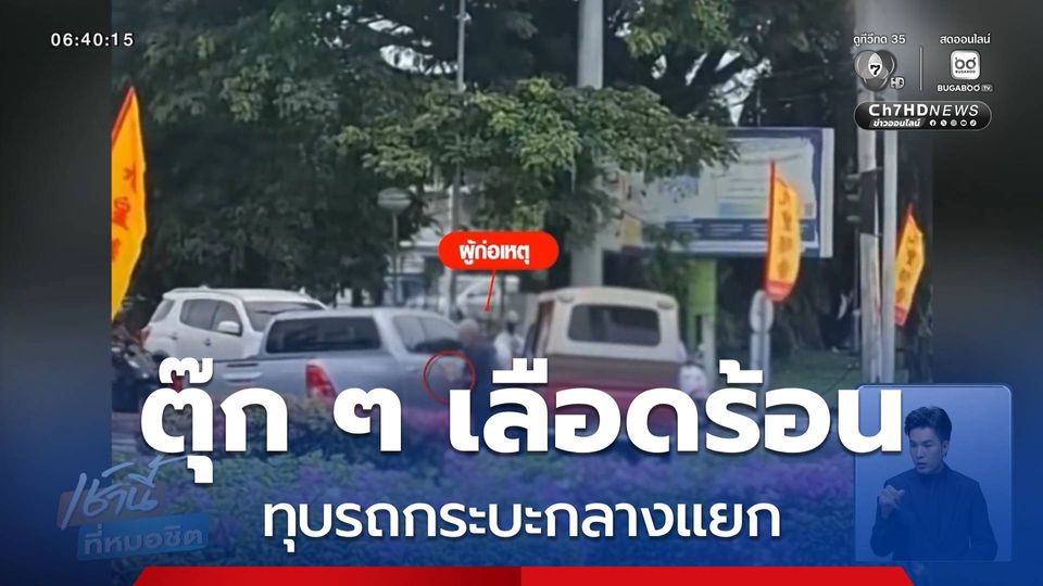 เช้านี้ที่หมอชิต - คนขับตุ๊ก ๆ ทั้งที่ตัวเองเป็นฝ่ายผิด ขับรถฝ่าไฟแดงไปเฉี่ยวชนรถกระบะของหน่วยงานหนึ่ง แต่กลับทำเป็นหัวร้อนทะลุปรอท ใช้มีดฟันรถคู่กรณี
