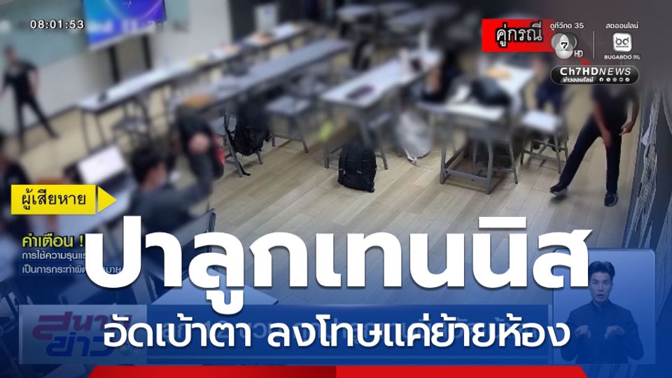 สนามข่าว 7 สี - ผู้ปกครองแจ้งความเอาผิดโรงเรียนนานาชาติดัง หลังลูกชาย อายุ 12 ขวบ ถูกเพื่อนร่วมห้องทำร้าย ปาลูกเทนนิสอัดเบ้าตา บาดเจ็บสาหัส แต่กลับลงโทษคู่กรณี แค่ย้ายห้องเรียน