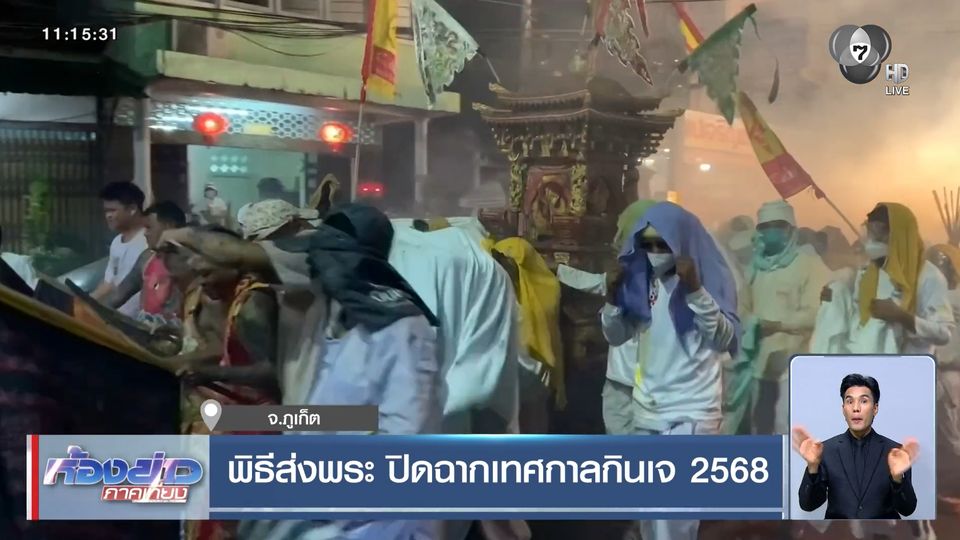 ห้องข่าวภาคเที่ยง - จังหวัดภูเก็ต ปิดฉากงานประเพณีถือศีลกินผัก ประจำปี 2568 หลังเสร็จสิ้นพิธีส่งพระ ศาลเจ้าจะประกอบพิธีลงเสาโกเต้ง ปิดท้ายงาน