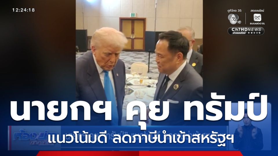 ห้องข่าวภาคเที่ยง - นายกรัฐมนตรี เผยข่าวดี อาจลดภาษีนำเข้าสหรัฐฯ หลังพูดคุยกับ "โดนัลด์ ทรัมป์" ส่วนตัว และ "ทรัมป์" ก็รับปากจะแจ้งผู้แทนการค้าสหรัฐฯ ให้ไทยได้รับเงื่อนไขดีกว่านี้