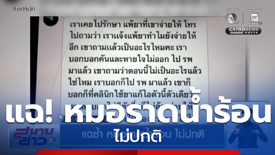 สนามข่าว 7 สี - พ่อ-แม่เด็ก 3 ขวบ เตรียมร้องแพทย์สภาเพิกถอนใบอนุญาตประกอบวิชาชีพเวชกรรมคลินิกโหดราดน้ำร้อนรักษาเด็ก คนไข้ที่เคยไปรักษา ออกมาแฉซ้ำว่าหมอไม่ปกติ