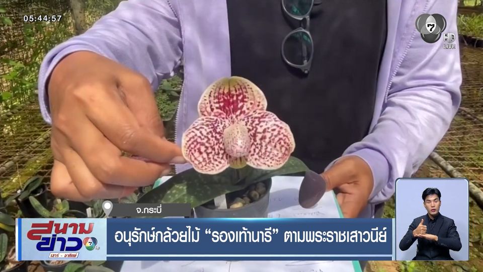 สนามข่าวเสาร์-อาทิตย์ - สมเด็จพระนางเจ้าสิริกิติ์ พระบรมราชินีนาถ พระบรมราชชนนีพันปีหลวง ทรงเป็นห่วง "กล้วยไม้รองเท้านารี" จะสูญพันธุ์ ทรงมีพระราชเสาวนีย์ให้ศูนย์วิจัยและพัฒนาการเกษตรกระบี่ ขยายพันธุ์กล้วยไม้รองเท้านารี และปลูกคืนสู่ผืนป่า